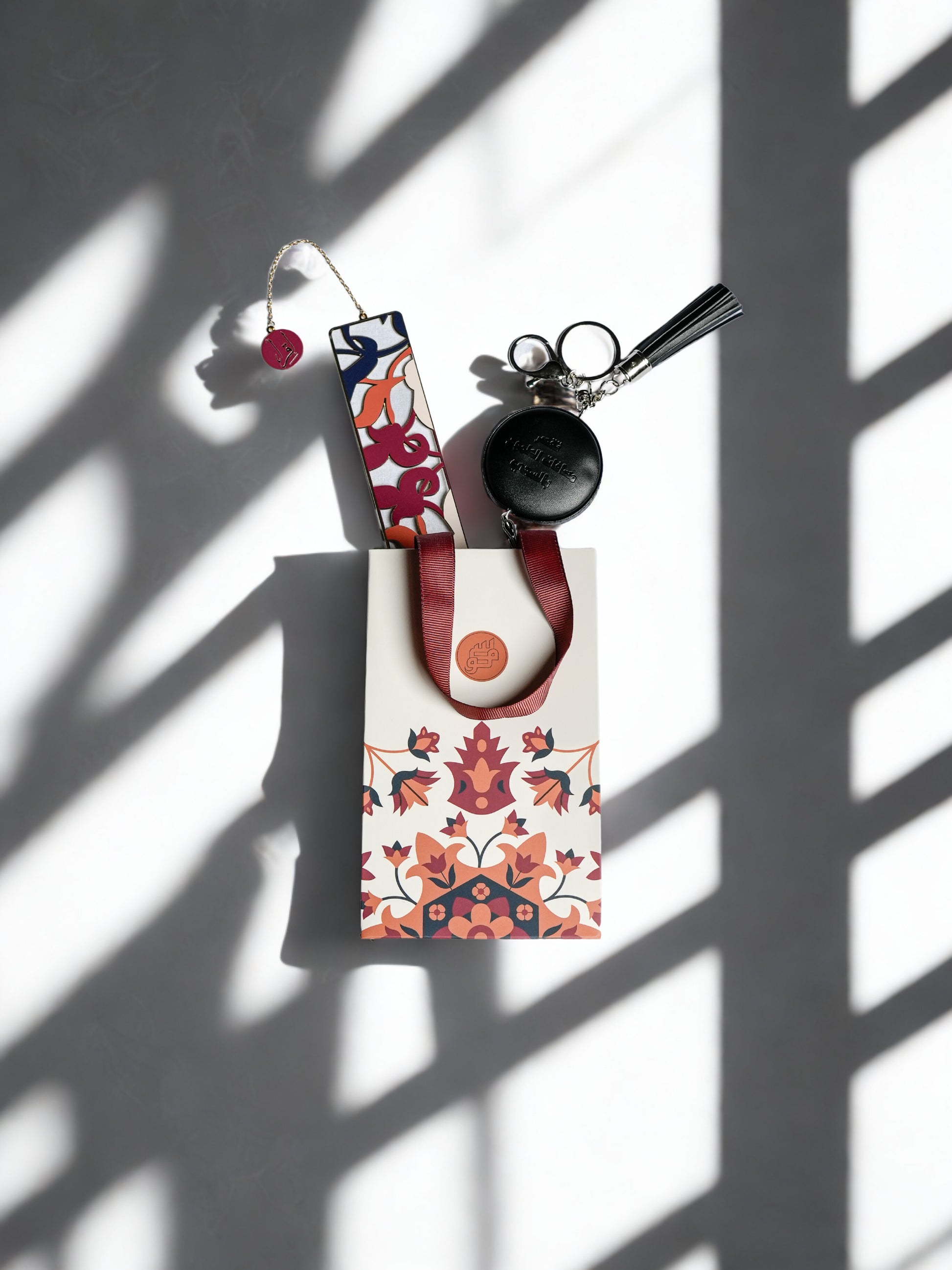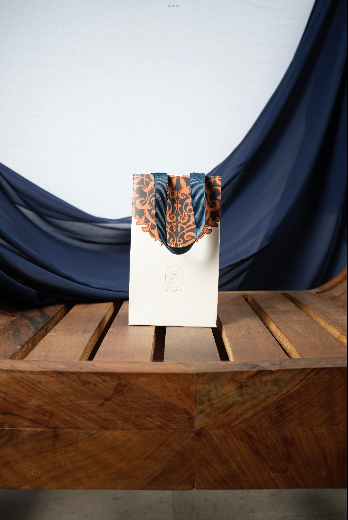 حقيبة هدايا ورقية أنيقة بتصميم تراثي عصري يجمع بين الأصالة والفخامة.